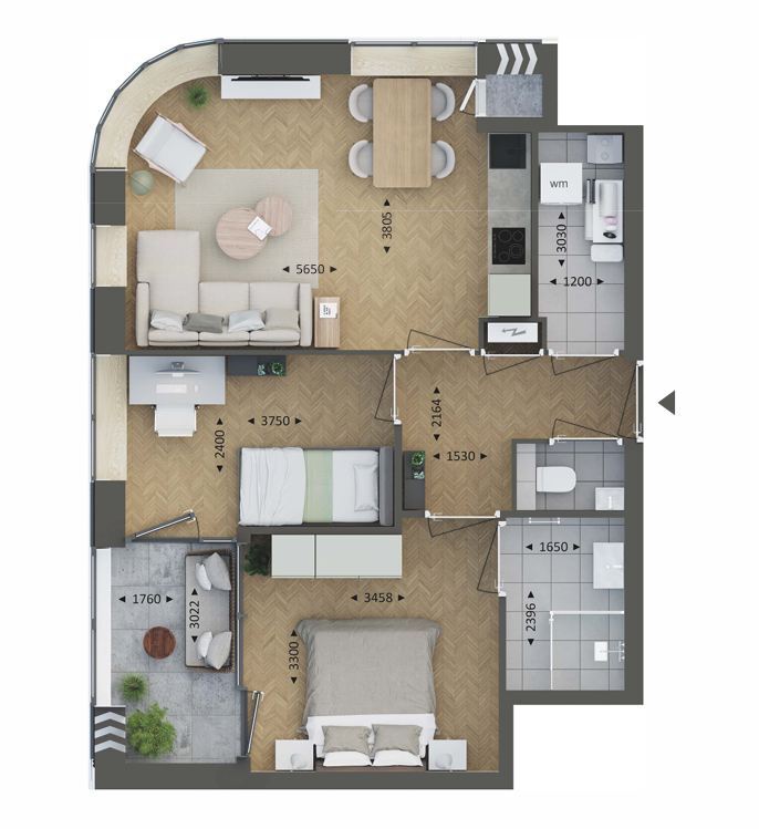 • 2- en 3-kamerappartementen variërend van ca. 57 tot 76 m² met comfortabele buitenruimtes