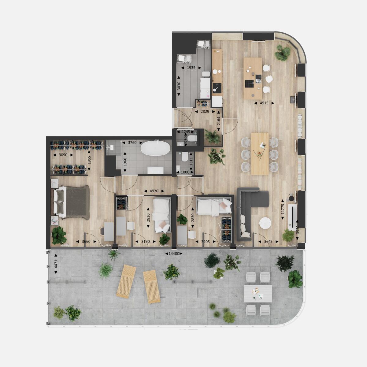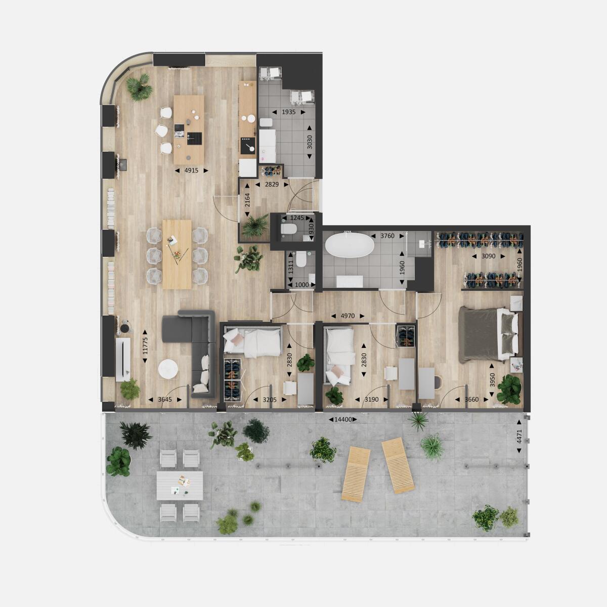 • 4-kamerpenthouses van ruim 120 m² met buitenruimtes van ruim 60 m²