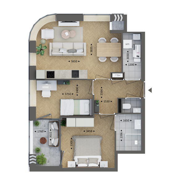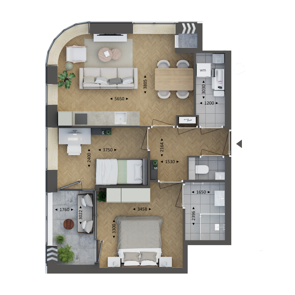 • 2- en 3-kamerappartementen variërend van ca. 57 tot 77 m² met comfortabele buitenruimtes