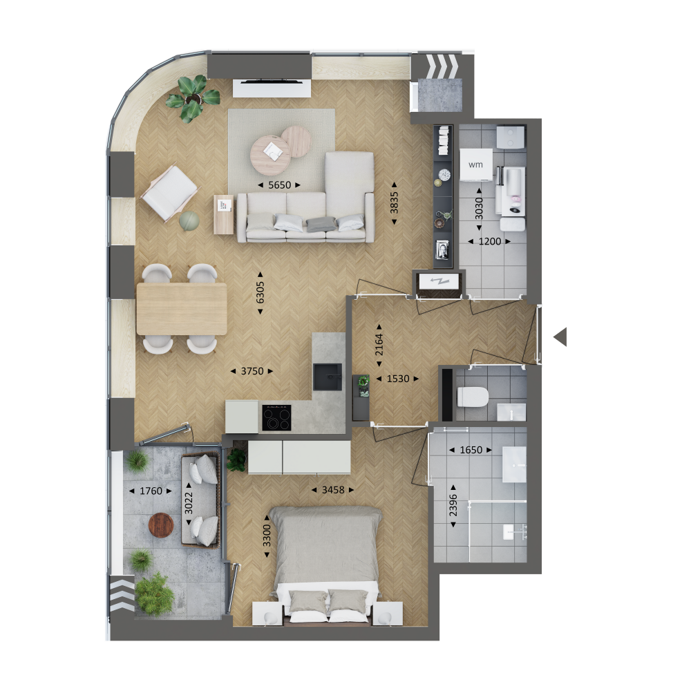 Via de hal stap je dit moderne 2-kamerappartement van circa 57 m² binnen. De woning is tweezijdig georiënteerd en heeft hoge raampartijen, waardoor er extra veel licht naar binnen valt. Hang je jas op in de ruime hal en loop door naar de riante woon- en eetkamer van circa 30 m². Hier is volop ruimte voor een royale keuken. Het rondlopende kozijn is dé eyecatcher en geeft de woning een opvallend ruimtelijk karakter. De tuinkamer van circa 5 m² (buitenruimte in de vorm van een loggia) is voorzien van een luxe glazen vouwsysteem (Solarlux). De tuinkamer is direct bereikbaar vanuit de woon-eetkamer, maar ook vanuit de slaapkamer van circa 12 m². Vanuit de slaapkamer stap je zo de badkamer in. Liever een extra kamer? Dan is het mogelijk om een extra slaapkamer of kantoorkamer van circa 9 m² toe te voegen. Zo ben je flexibel voor de toekomst en dat is wel zo prettig.