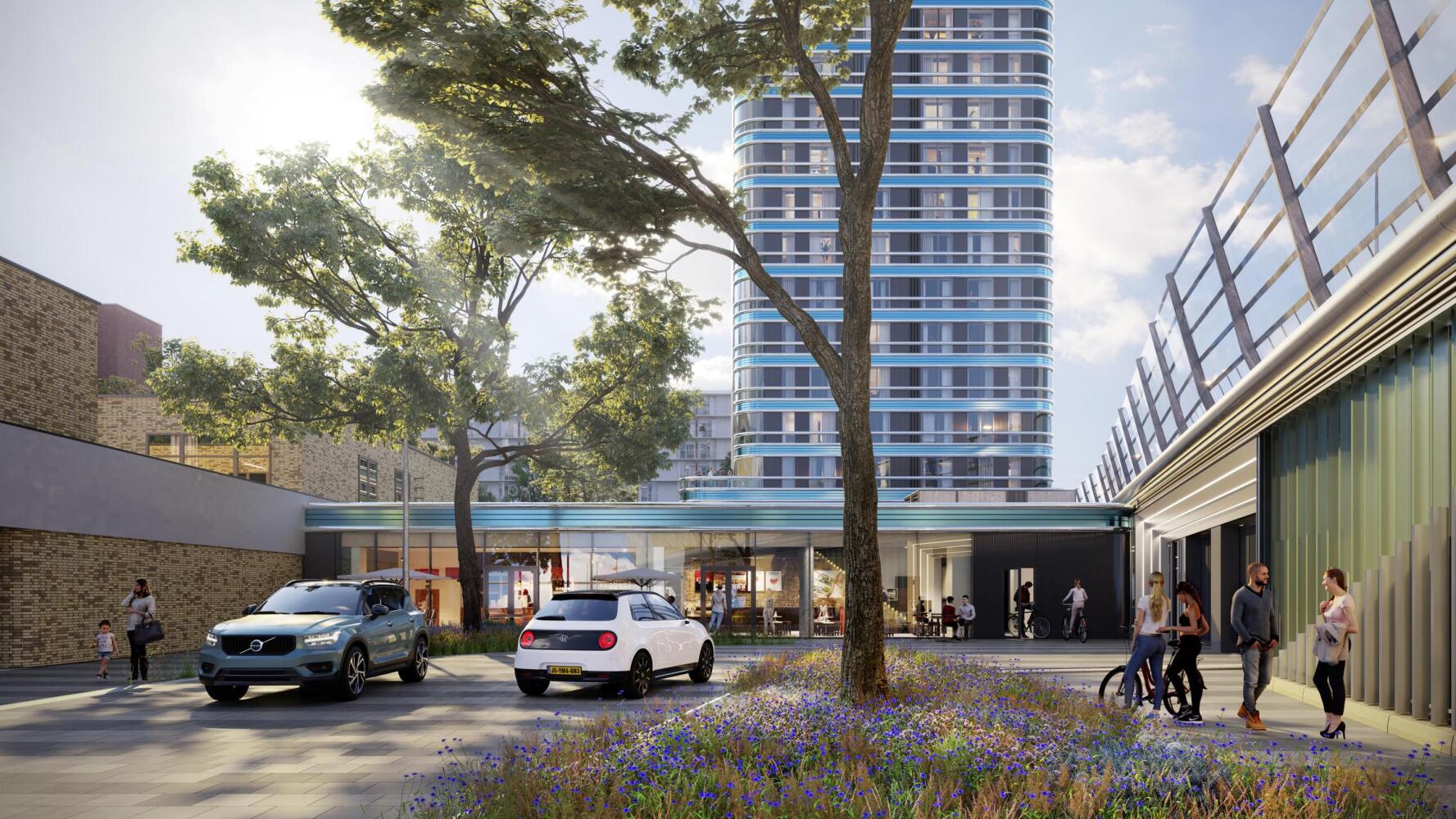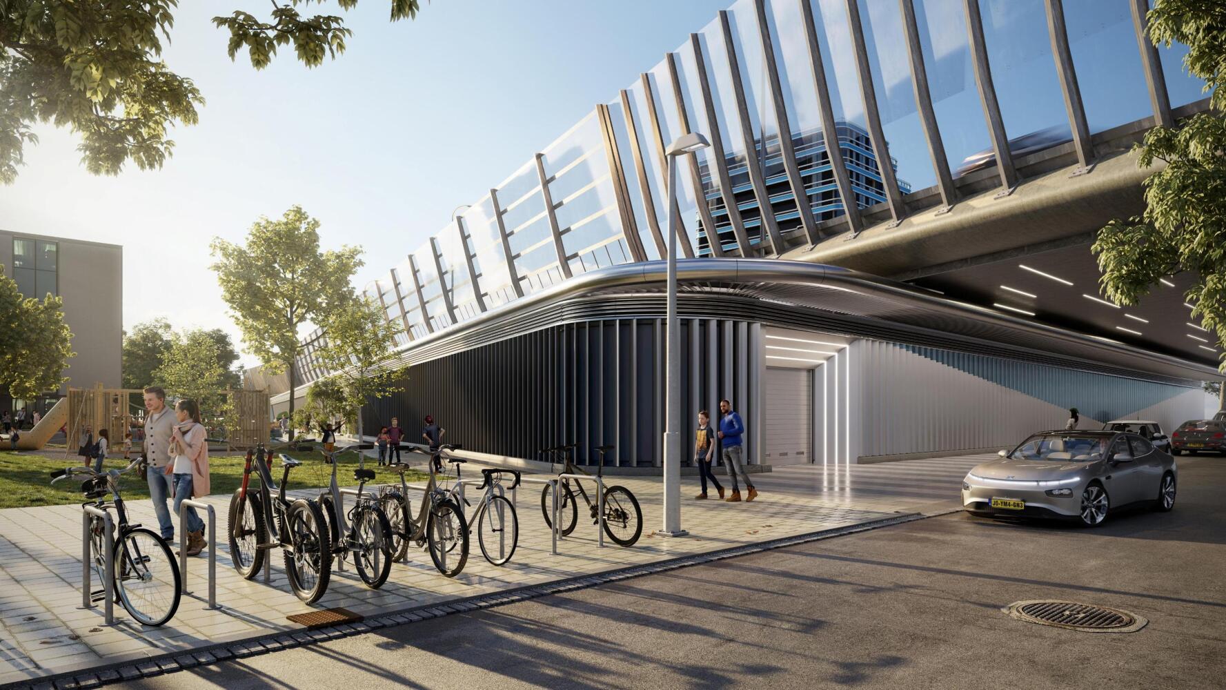 Een deel van de appartementen kan desgewenst een parkeerplaats huren in de futuristische parkeergarage naast het complex (onder de ring A10.