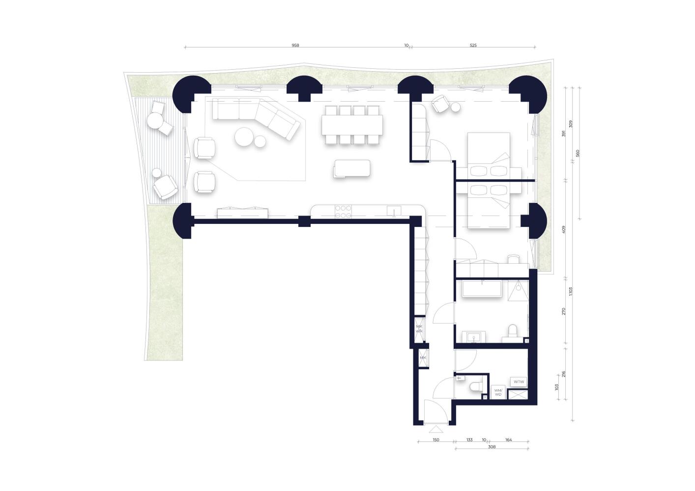 Ceci has been developed with ambitious sustainability goals. High insulation values, triple glazing, integrated solar panels and an innovative construction method using timber and recycled concrete minimise energy consumption while maximising living comfort. The result is an A+++ energy label. Underfloor heating and cooling provide a stable and comfortable indoor climate throughout the year. Triple glazing not only offers excellent insulation, but also effective sound reduction.