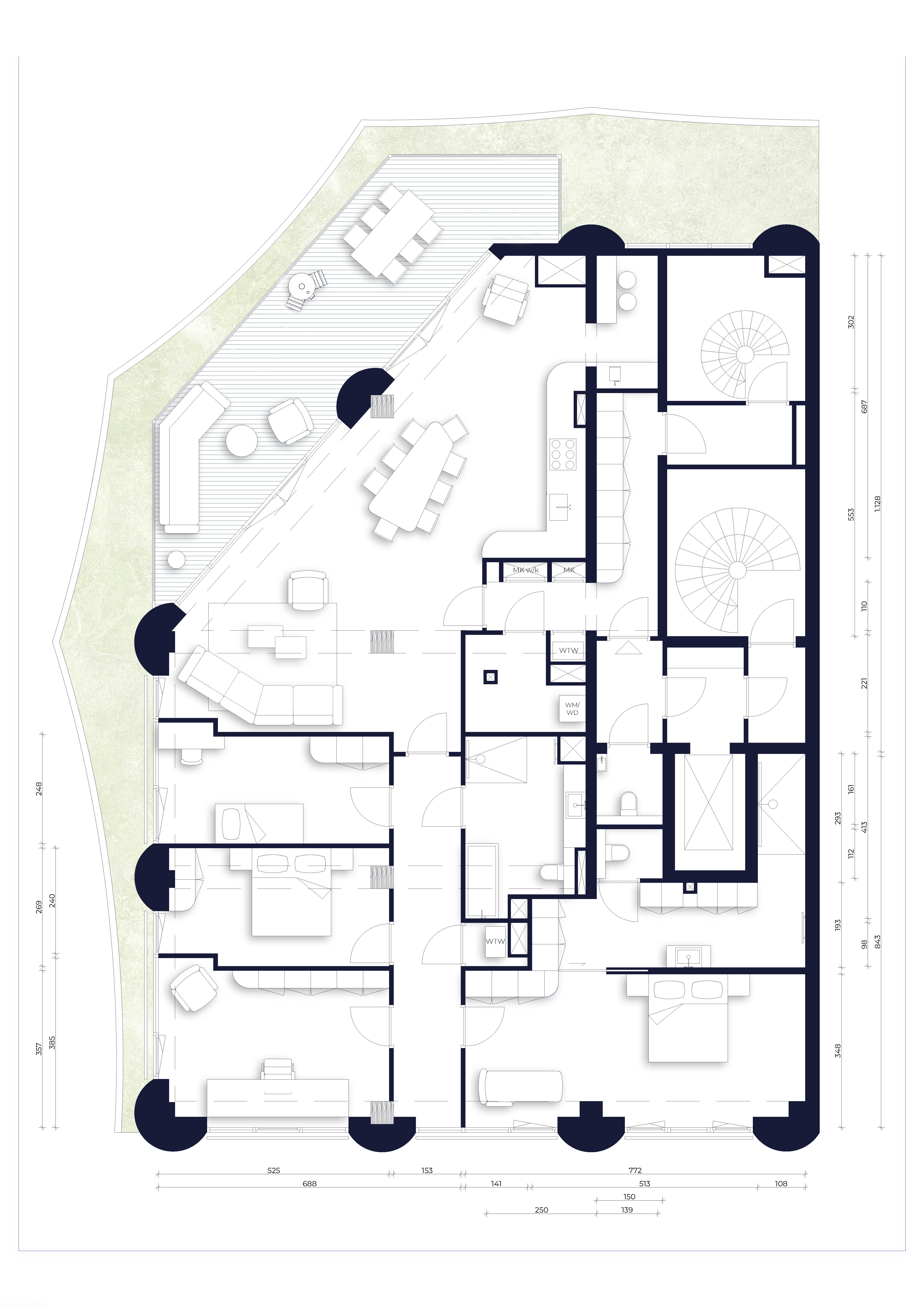 Ceci has been developed with ambitious sustainability goals. High insulation values, triple glazing, integrated solar panels and an innovative construction method using timber and recycled concrete minimise energy consumption while maximising living comfort. The result is an A+++ energy label. Underfloor heating and cooling provide a stable and comfortable indoor climate throughout the year. Triple glazing not only offers excellent insulation, but also effective sound reduction.
