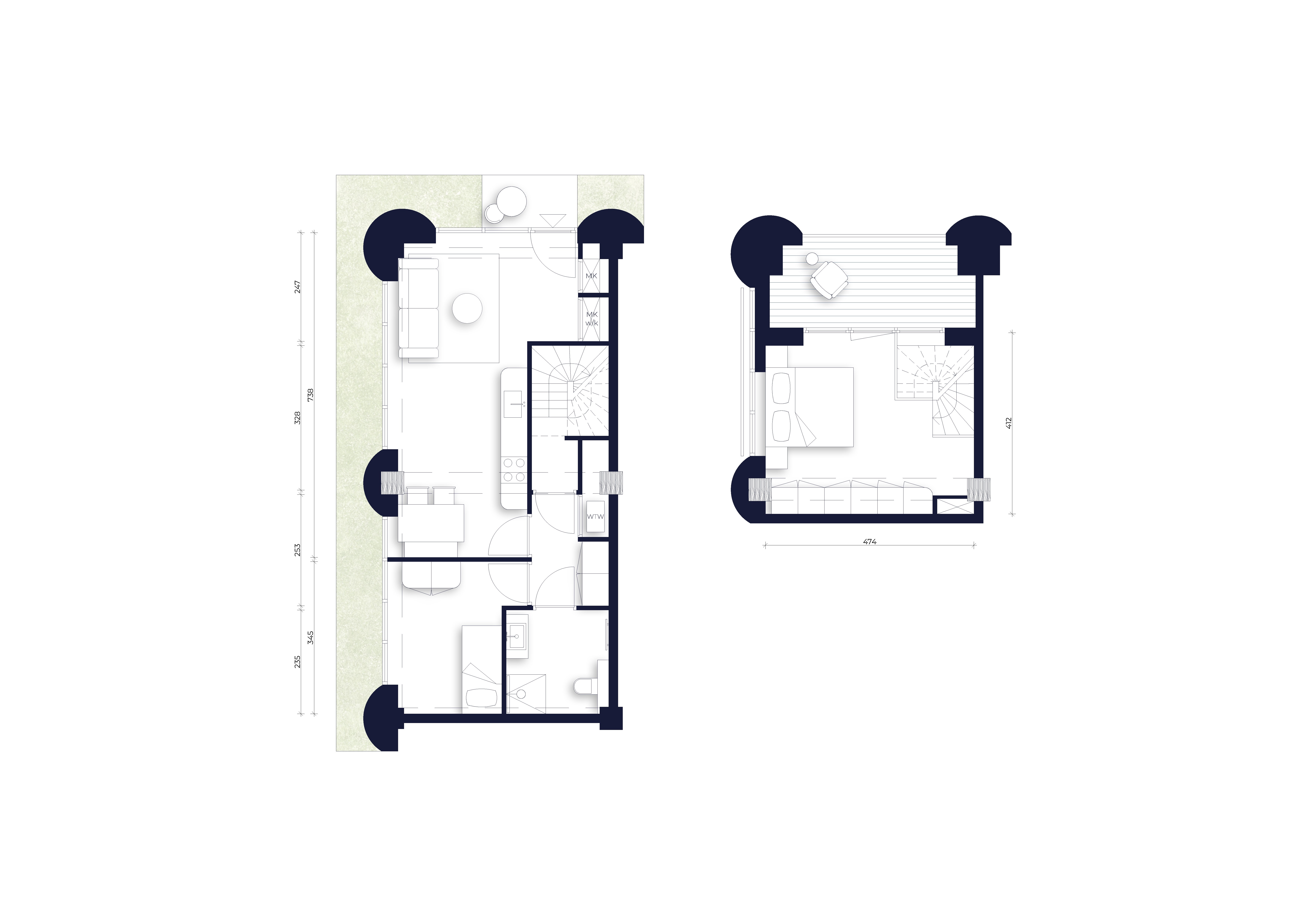 Ceci has been developed with ambitious sustainability goals. High insulation values, triple glazing, integrated solar panels and an innovative construction method using timber and recycled concrete minimise energy consumption while maximising living comfort. The result is an A+++ energy label. Underfloor heating and cooling provide a stable and comfortable indoor climate throughout the year. Triple glazing not only offers excellent insulation, but also effective sound reduction.
