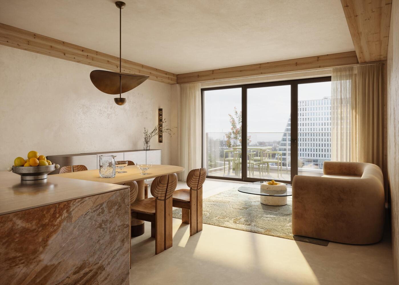 De interieurarchitecten van Studio Modijefski ontwierpen de plattegronden van de woningen en maakten een selectie van materialen voor de afwerking van de badkamer. Wie verder wil personaliseren, kan gebruikmaken van aanvullende interieurservices van Studio Modijefsky. Van verfijnde afwerkingen tot een volledig maatwerk interieur, passend bij het karakter van Ceci.