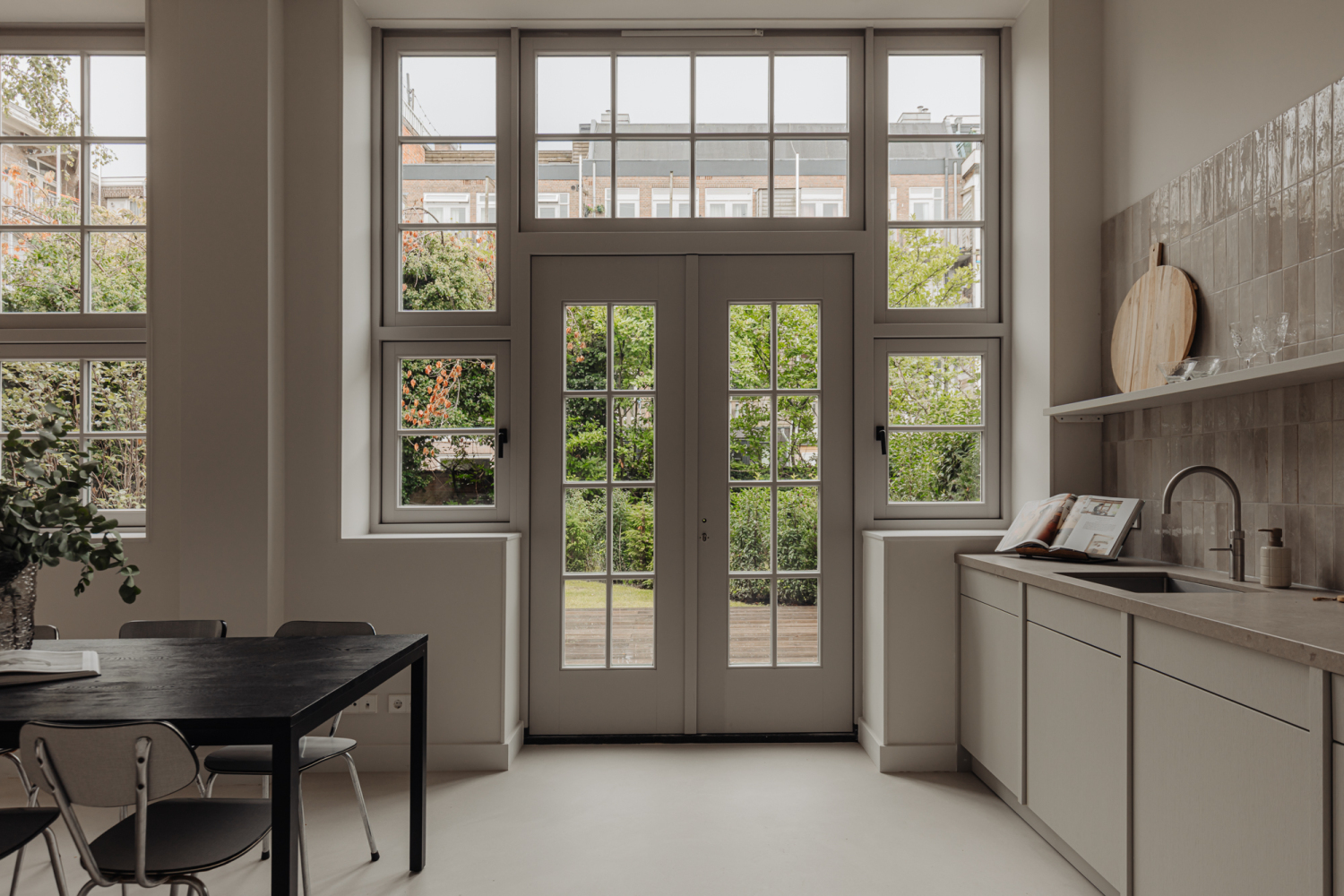 Wonen in een loft met een fantastische vrije hoogte van 4,50 meter en plafondhoge ramen die prachtig licht binnenlaten. De hal heeft een berging, wasruimte en toilet. Vanuit de hal is de badkamer bereikbaar, voorzien van een inloopdouche en dubbele wastafel met meubel. De badkamer is ontworpen door Piet Boon en is uitgerust met luxe tegels en kranen van Piet Boon. Het middelpunt van de woning is het woonvertrek met een vrije hoogte van 4,50 meter. De ruimte biedt plek aan een keukengedeelte met voldoende plaats voor een grote eettafel. De woning is voorzien van aansluitingen voor een keuken. Studio Piet Boon heeft een fraai ontwerp gemaakt voor een luxe keuken. Het zitgedeelte heeft plafondhoge ramen en openslaande deuren naar de tuin. De fraai aangelegde tuin van circa 37 m² biedt volop privacy en groen. De woning heeft twee goed formaat slaapkamers. De hoofdslaapkamer heeft een unieke hoogte van 4,5 meter, en de andere slaapkamer heeft ook openslaande deuren naar de tuin. Vanuit het woongedeelte is een ruime entresol bereikbaar; deze plek is ideaal als studie, tv-kamer of extra slaapkamer. Vanaf de entresol is er een spectaculair uitzicht op het woonvertrek. In de kelder is een praktische berging van circa 4 m².