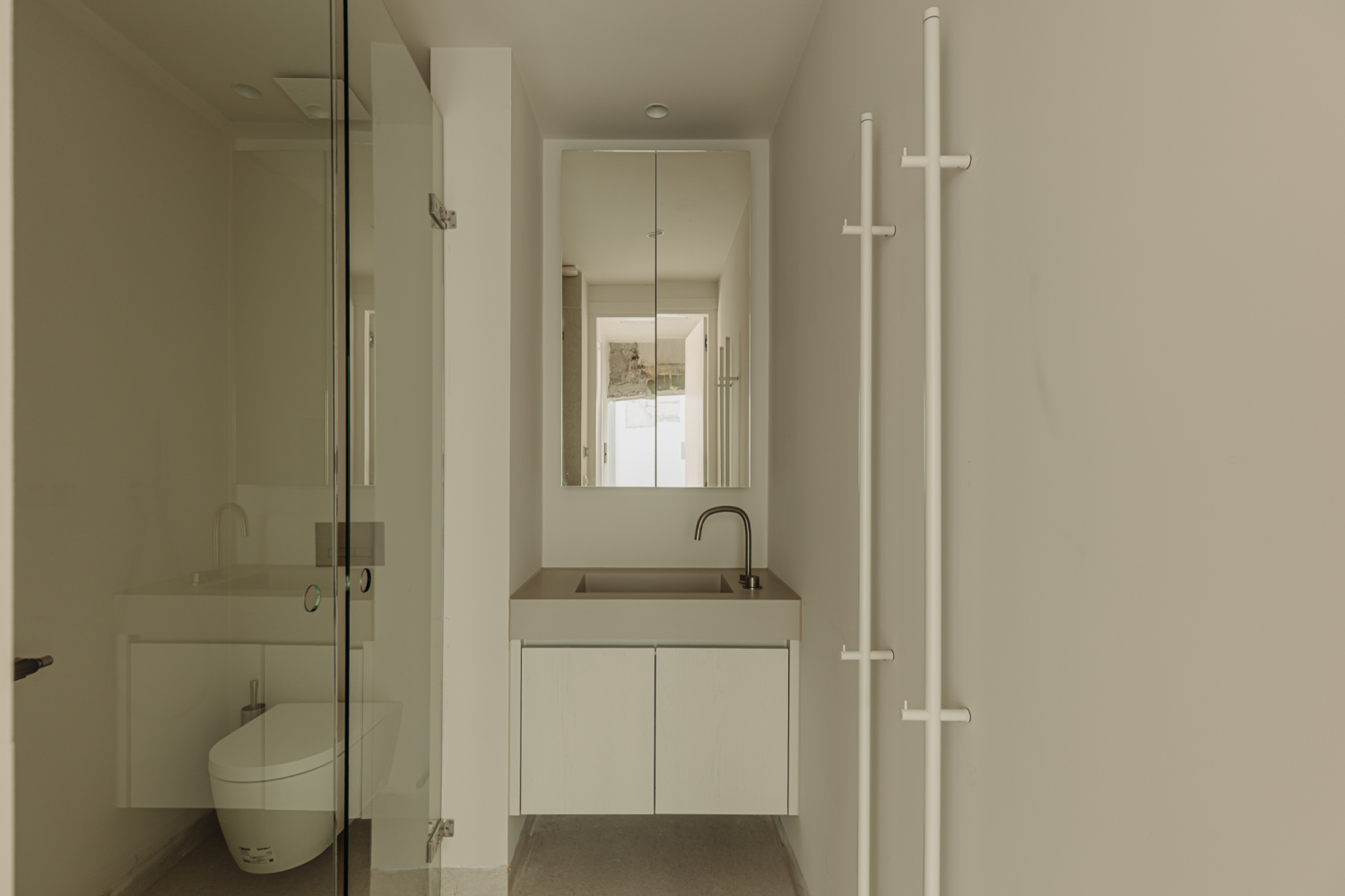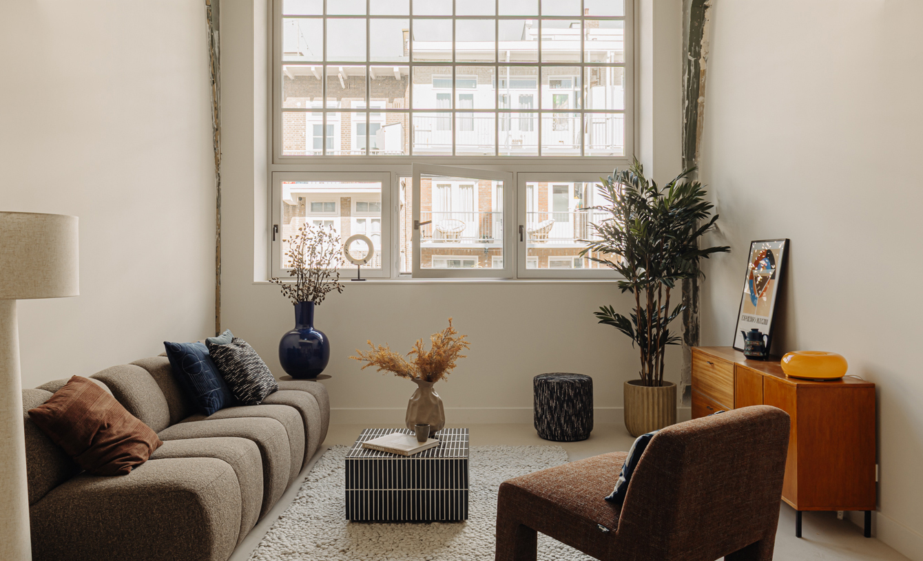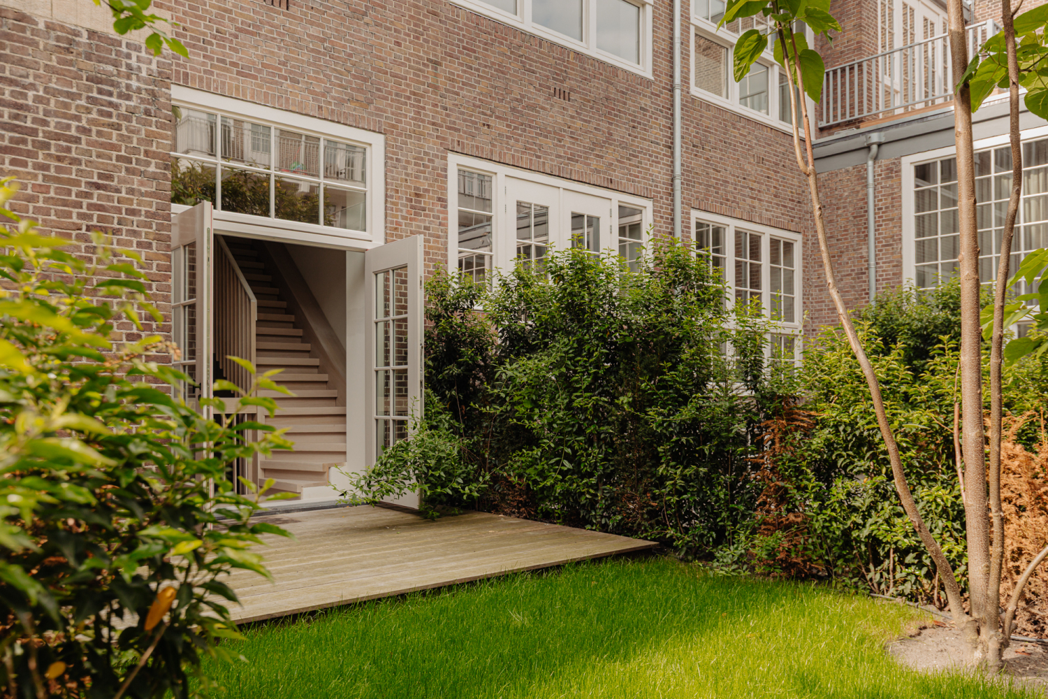 Dit speelse en lichte huis is verdeeld over drie woonlagen met een groene stadstuin van circa 32 m². Op de begane grond bevindt zich de fraaie leefkeuken, die wat dieper is gelegen, wat zorgt voor een gezellige eethoek. Het hoge plafond van circa vijf meter creëert een indrukwekkend ruimtelijk effect. De woning is voorzien van een Studio Piet Boon-keuken, een ontwerp dat volledig is geïntegreerd in de ruimte en is uitgerust met luxe Siemens-apparatuur, waaronder een vaatwasser, combi-oven en Quooker-kraan. Naast de keuken bevindt zich een ruime berging en een separaat toilet. De openslaande deuren vanaf het bordes geven toegang tot de fijne tuin met terras. De gedetailleerde eiken trap vormt een essentieel onderdeel van de ruimte en verbindt deze met de eerste verdieping. Hier bevindt zich de woonkamer, waar de originele betonconstructie in het zicht is gelaten en een vide van circa 5 meter hoog voor extra ruimtelijkheid zorgt. De ruimte biedt plaats aan een grote zithoek en een werk- of speelhoek. Aansluitend is er een hal met een toilet, wasruimte en een slaapkamer met badkamer ensuite. De badkamer is uitgerust met een wastafel met meubel, een inloopdouche en een opbergkast. De badkamers zijn afgewerkt met luxe tegels en kranen van Piet Boon. De slaapkamer met vide heeft een hoogte van 5,15 meter en een grote raampartij, waardoor er veel natuurlijk licht binnenvalt. Via de trap is de tweede verdieping bereikbaar. De trapopgang heeft een hoogte van 7,30 meter en een glazen lichtstraat, wat zorgt voor een extra ruimtelijk gevoel. Op deze verdieping bevinden zich de tweede en derde slaapkamer. Deze delen een badkamer met een inloopdouche, toilet en wastafel met meubel. Beide slaapkamers hebben een fraai stalen kozijn met glas, dat uitzicht biedt op de ondergelegen verdieping. Daarnaast beschikken beide kamers over een extra daklicht.