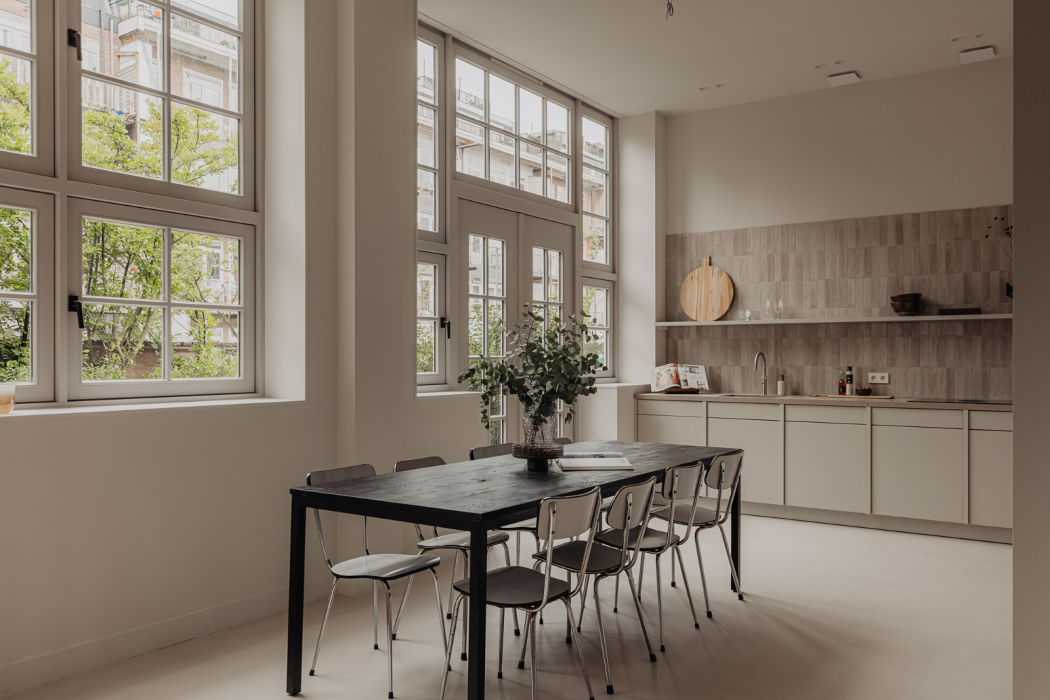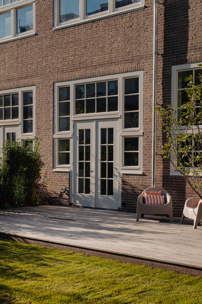 Zeer lichte woning van circa 143 m², gelegen op het zuiden. De woning is verdeeld over drie woonlagen met drie slaapkamers en twee badkamers. De woning heeft een entree met gastentoilet en berging met technische installaties. Op de begane grond is een grote woonkeuken met aansluitend de tuin. Door de hoge plafonds van 3,50 meter, grote raampartijen en de zuidelijke ligging is de ruimte prettig licht. De openslaande deuren geven toegang tot het terras en de tuin, gelegen op het zuiden. De tuin van circa 105 m² heeft de hele dag zon door de zuidelijke ligging. Binnen en buiten lopen hier naadloos in elkaar over. De woning is voorzien van aansluitingen voor een keuken. Studio Piet Boon heeft een ontwerp gemaakt voor een luxe keuken. Een mooi gedetailleerde eiken trap, ontworpen door Studio Piet Boon, maakt onderdeel uit van de ruimte en vormt de verbinding naar de eerste verdieping. Op de eerste verdieping bevindt zich de woonkamer met de originele betonconstructie in het zicht en een vide van 5,15 meter hoog. De ruimte biedt plek aan een grote zithoek en werk- of speelhoek. Aansluitend is er een hal met toilet, wasruimte en een slaapkamer met badkamer en suite. De badkamer is voorzien van een wastafel met meubel, inloopdouche en opbergkast. De badkamers zijn ontworpen door Piet Boon en voorzien van luxe tegels en kranen van Piet Boon. De slaapkamer met vide heeft een hoogte van 5,15 meter en een grote raampartij op het zuiden. Op de tweede verdieping zijn er een tweede en derde slaapkamer. Deze delen een badkamer met inloopdouche, toilet en wastafel met meubel. Beide slaapkamers hebben een fraai stalen kozijn met glas, dat uitkijkt op de ondergelegen verdieping, een fraai en functioneel detail. Beide kamers hebben een extra daklicht. In de kelder is een praktische berging van circa 4 m².