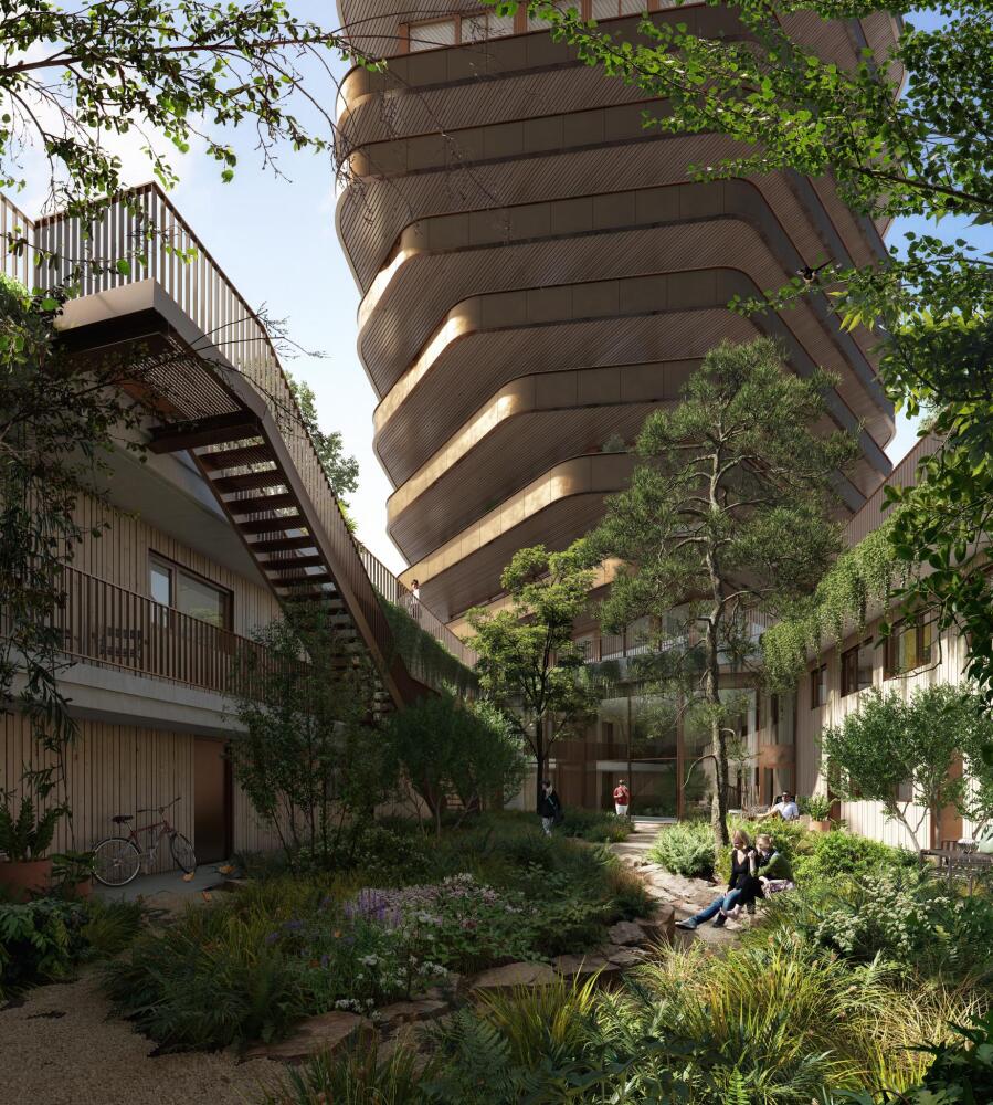 Elements is climate-positive in terms of energy: a lot of the building’s energy requirements will be generated sustainably by integrated solar panels in the edges of the balconies. In addition, sustainable wood will be used in the building to reduce the carbon footprint, and the green roof gardens will help to lower heat stress in the city.