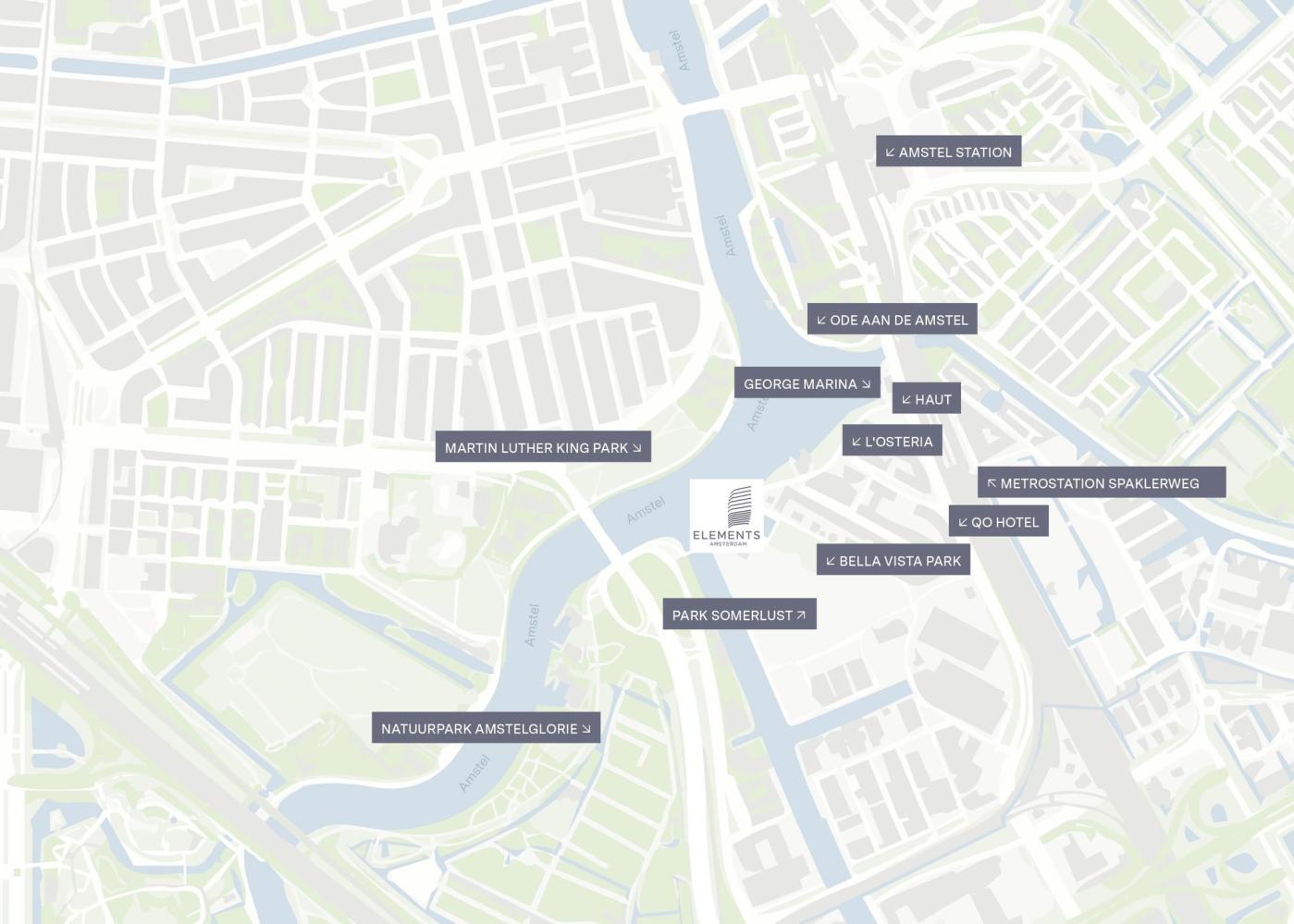 In Elements woon je in een gebouw dat heel veel te bieden heeft. In de 70 meter hoge toren komen in totaal 70 koopwoningen en 70 huurwoningen in het middensegment. Elements krijgt een eigen zwembad met uitzicht op de Amstel. Het gebouw krijgt verschillende daktuinen. Fijne plekken om tot rust te komen. Op de begane grond van Elements komt ruimte voor bedrijven zoals bijvoorbeeld co-working spaces en een gezellige bar.