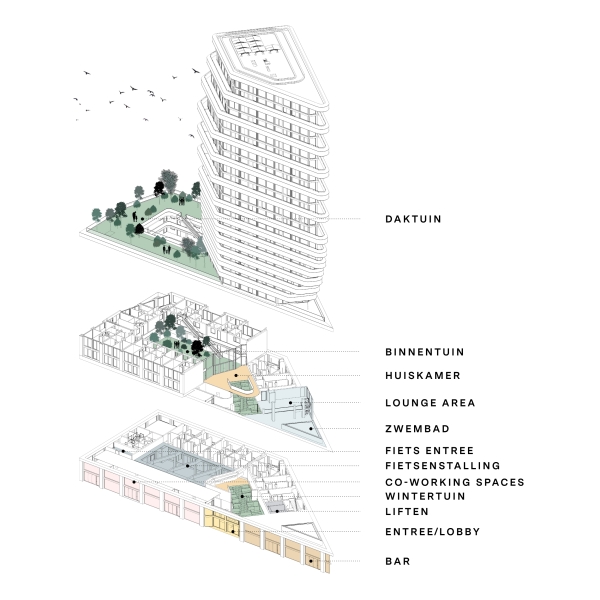 - 70 meter hoge toren met in totaal 70 koopwoningen en 70 huurwoningen in het middensegment.