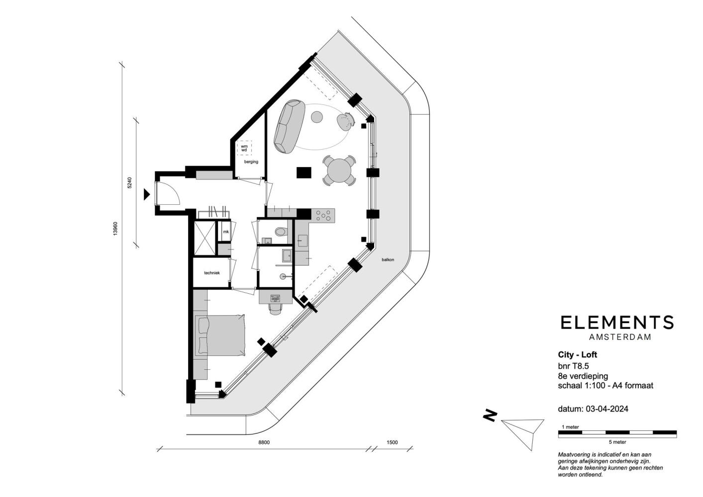 Op de achtste verdieping van Elements komt deze City Loft van circa 66 m2.