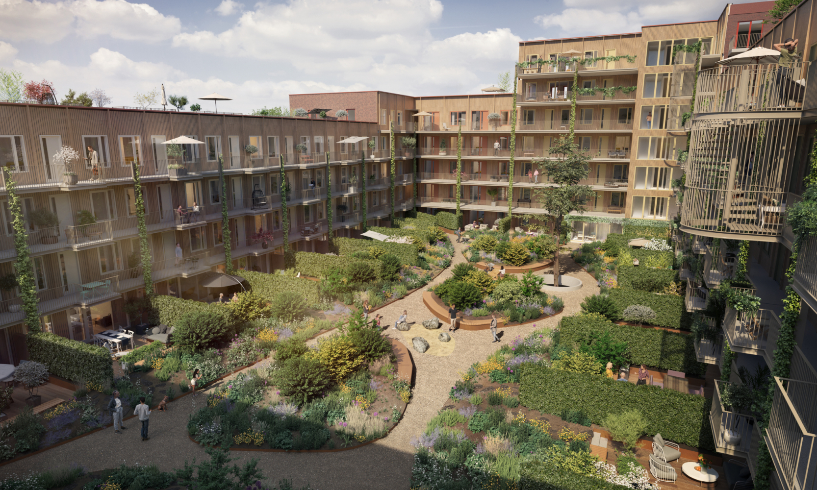 Klimaatadaptief: De woningen zijn afgestemd op de gevolgen van het veranderende klimaat. Onder de parkeergarage wordt regenwater slim opgevangen in ondergrondse waterbuffers. Dat helpt wateroverlast te voorkomen en draagt bij aan een gezonde bodem.