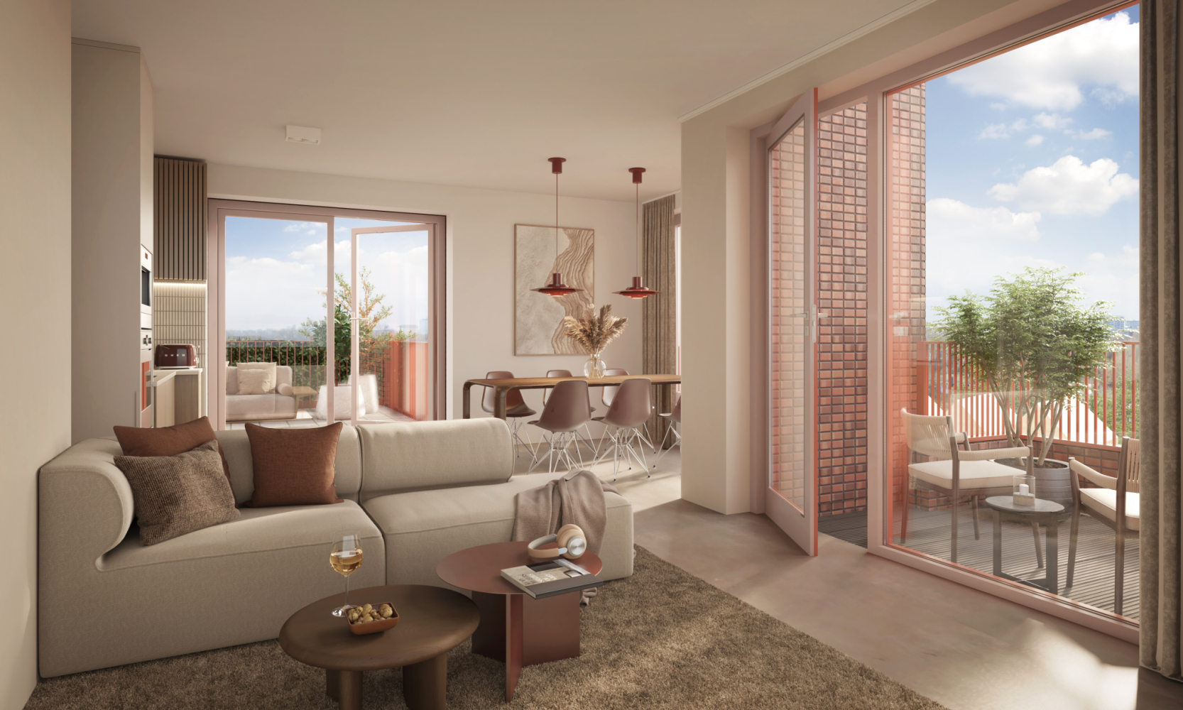 De maisonnettes – benedenwoningen met twee woonlagen – liggen aan gezellige woonstraatjes en hebben, naast een eigen entree, ook een royaal terras op de eerste verdieping. Daarboven bevinden zich de appartementen waarvan de meeste een ruime woonkamer, twee slaapkamers en een balkon of dakterras hebben. Op zesde verdieping vind je twee penthouses met ruime, zonnige dakterrassen en een fantastisch uitzicht op de stad. En op de zevende verdieping liggen royale appartementen met volop privacy én panoramisch uitzicht helemaal richting het Centraal Station.