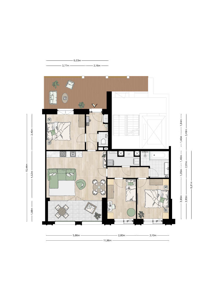In hoek-gebouw GURiiN komen 12 appartementen met woonoppervlakten tussen 90 en 105 m2. En de andere koopwoningen komen in gebouw MiGOTO, namelijk 6 appartementen van 90 m2 of 93 m2 en 2 royale maisonnettes van circa 130 m2. Elk gebouw heeft zijn eigen prettige entree. Je komt hier alleen je directe buren tegen. Het wonen in een kleinschalig appartementengebouw geeft een gevoel van saamhorigheid en geborgenheid. Ook heeft elk gebouw een apart gedeelte met daarin de individuele bergingen van de bewoners.