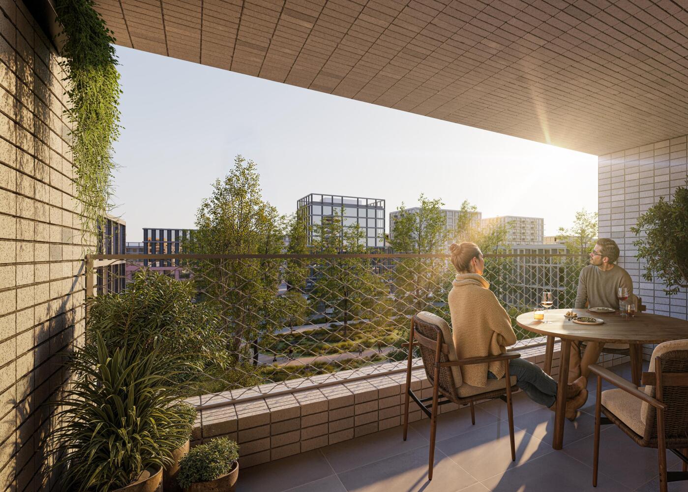 In Hibi geniet je niet alleen in je privé-buitenruimte van het zonnetje, maar kan je er ook voor kiezen om je even te ontspannen in het groen van de binnentuin. De verrassing van HiBi is de grote groene gedeelde binnentuin: een weelderige oase vol bomen en planten. Vanuit je woning heb je prachtig zicht op het groen. Hier ontspannen bewoners, spelen kinderen en nestelen dieren op ruim 1250 m2 stadsnatuur. Hibi haalt de natuur letterlijk naar je achtertuin. De zachte overgangen, getrapte niveaus en kleine waterpartijen geven een mooie speelse sfeer aan de tuin. Hier doe je samen leuke dingen, zoals sporten, barbecueën of tuinieren. Echt een plek voor rust en ontspanning.