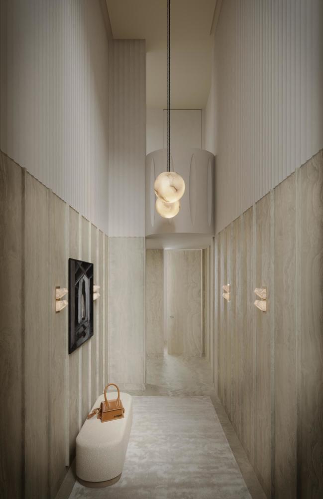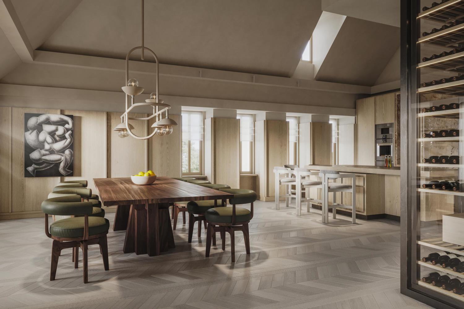 De hoogte van de kapetage geeft het penthouse, onderdeel van het Project Kings/Lane, veel sfeer en een rijk gevoel van ruimte.