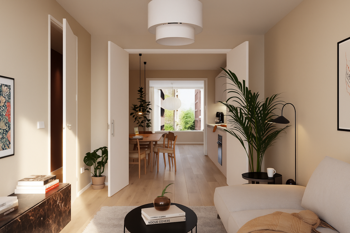 Red Polly biedt een unieke kans om te wonen in een woning die zich aanpast aan jouw leven.. Deze ruime 3-kamerappartementen zijn ontworpen met oog voor licht en leefcomfort. De doorzonwoonkamer zorgt voor een open, warme sfeer, terwijl suitedeuren je de vrijheid geven om te kiezen tussen privacy en openheid. De woonkeuken vormt het hart van de woning – perfect voor gezellige diners of rustige ochtenden met koffie.