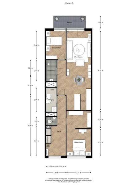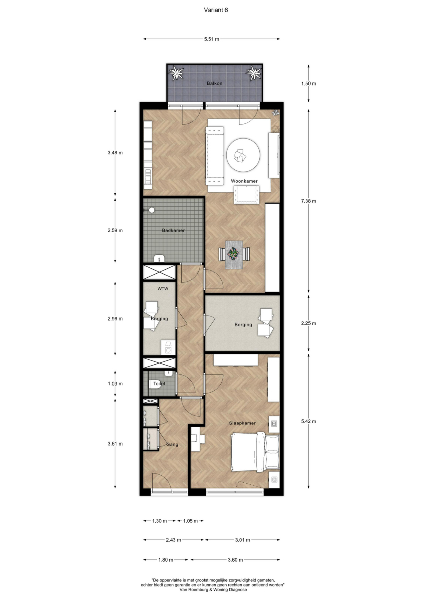 De verkoopinformatie is met grote zorgvuldigheid samengesteld doch voor de juistheid van de inhoud kunnen wij niet instaan en er kunnen derhalve geen rechten aan worden ontleend. De inhoud is puur informatief en mag niet worden beschouwd als een aanbod. Daar waar gesproken wordt over inhoud, oppervlakten of afmetingen moeten deze worden beschouwd als indicatief en als circa maten. Aangezien het nieuwbouw betreft, zijn de opgegeven m2 niet conform de Meetinstructie Gebruiksoppervlakte woningen van de NVM, maar zijn conform opgave architect. U dient als koper zelfonderzoek te verrichten naar zaken die voor u van belang zijn. Wij raden u in dat verband aan uw eigen (NVM-)makelaar in te schakelen.