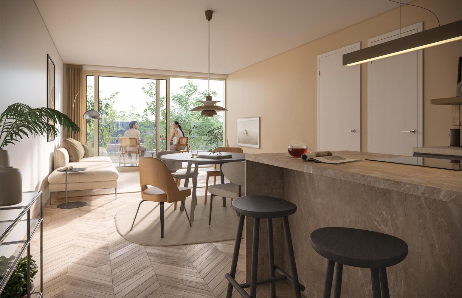 • Yard en Viu (3-kamerappartementen) – Een diepe en extra lichte woonkamer, met volop zicht en een prachtig uitzicht over het eiland (ca. 78 m²).