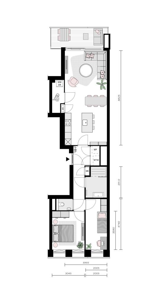 • Nook (2-kamerappartementen) – Compact en slim ingedeeld, om zelf een eigen stijl en indeling te bepalen voor persoonlijk en comfortabel wonen (ca. 51–54 m²)