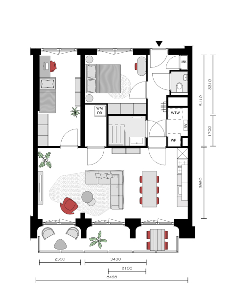 • Nook (2-kamerappartementen) – Compact en slim ingedeeld, om zelf een eigen stijl en indeling te bepalen voor persoonlijk en comfortabel wonen (ca. 51–54 m²)