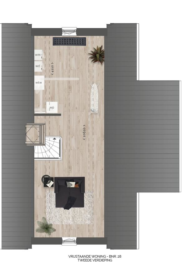 Beneden zijn door het grote woonoppervlakte de indelingsmogelijkheden eindeloos. Boven heeft u drie slaapkamers, een badkamer en boven de zij-erker een ruime berging die als extra bergruimte kan dienen. Op de zolder is volop ruimte om nog 1 of 2 kamers te maken.