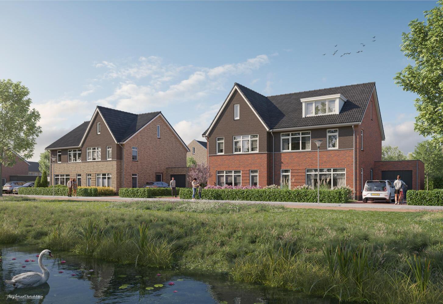 Woningmodel Groenrijck betreft bouwnummers H01 t/m H04 en is een royale twee-onder-een-kapwoning met volop ruimte en comfort. Optioneel kan de voorgevel worden voorzien van een stijlvol accent, wat extra ruimte creëert en zorgt voor een fraaie uitstraling. Elke woning beschikt over een gemetselde berging en twee parkeerplaatsen op eigen terrein. Bovendien geniet je van een prachtig uitzicht over het water. De bouwnummers H03 en H04 beschikken over oranjerode stenen.
