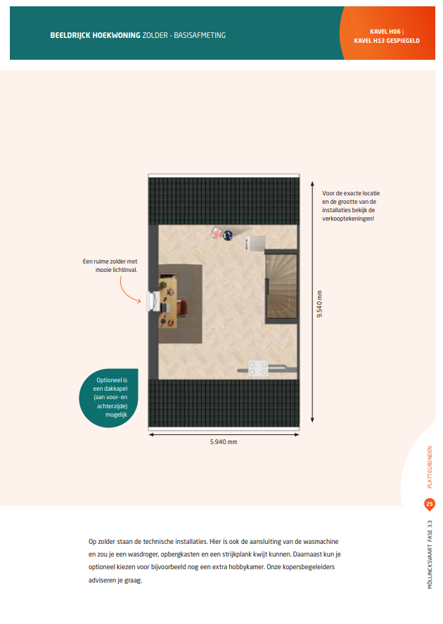 Let op: het door de ontwikkelaar opgegeven gebruiksoppervlak kan afwijken van het daadwerkelijke woonoppervlak! Bij het gebruiksoppervlak kunnen ook bergzolders, bergingen of andere ruimten zijn gerekend, terwijl deze volgens de NEN2580 niet als woonoppervlak zijn aan te merken. Afhankelijk van de mogelijkheden kunt u bijvoorbeeld voor een bergzolder een dakraam toepassen, waardoor deze ruimte eventueel alsnog als woonoppervlak kan worden gerekend. Vraag de makelaar voor meer informatie en eventuele mogelijkheden.