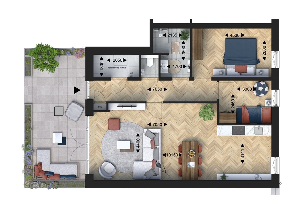 Heerlijk wonen aan de binnentuin met het genot van een heel groot terras!