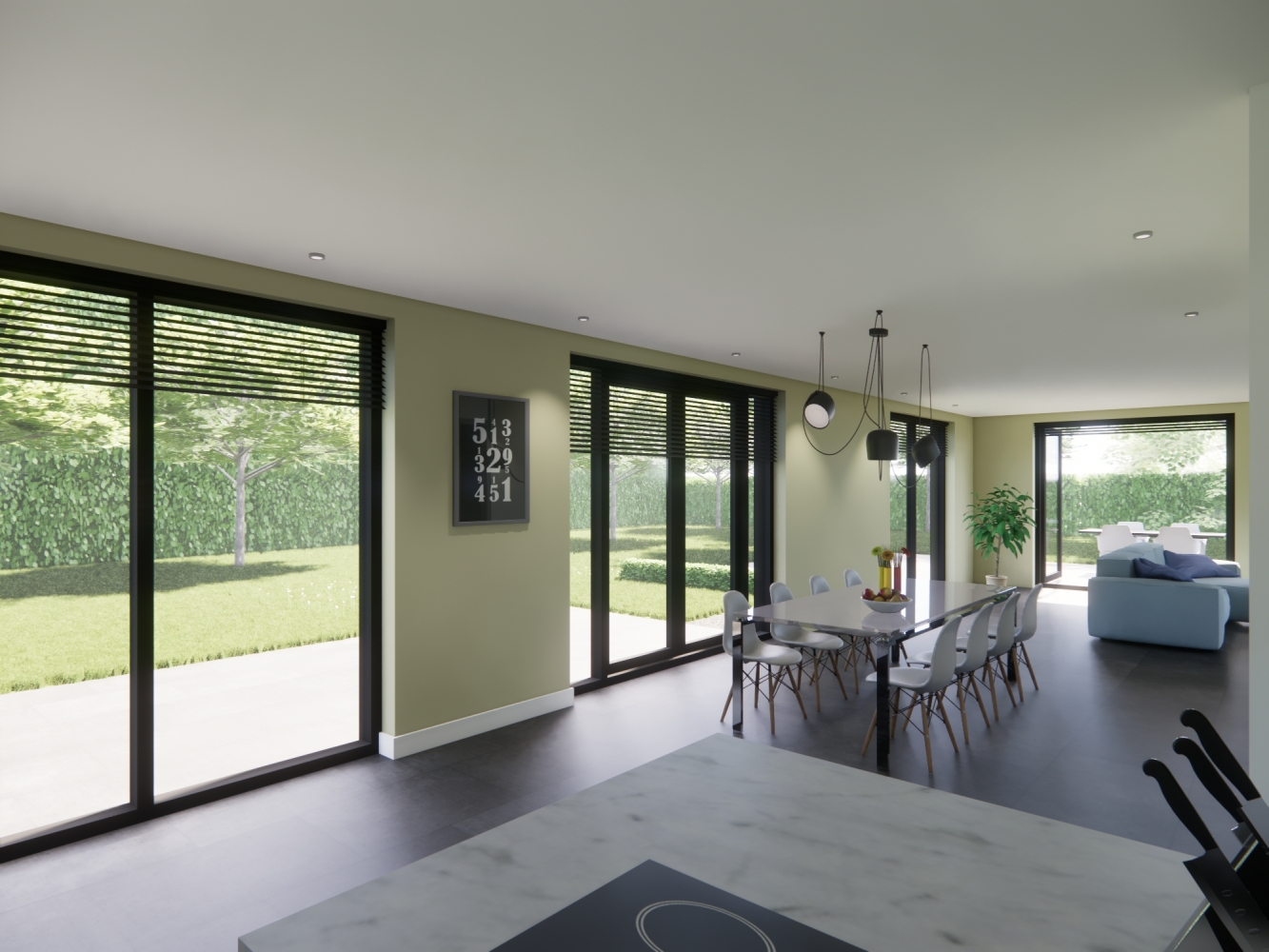 - Volop daglicht in de open keuken.