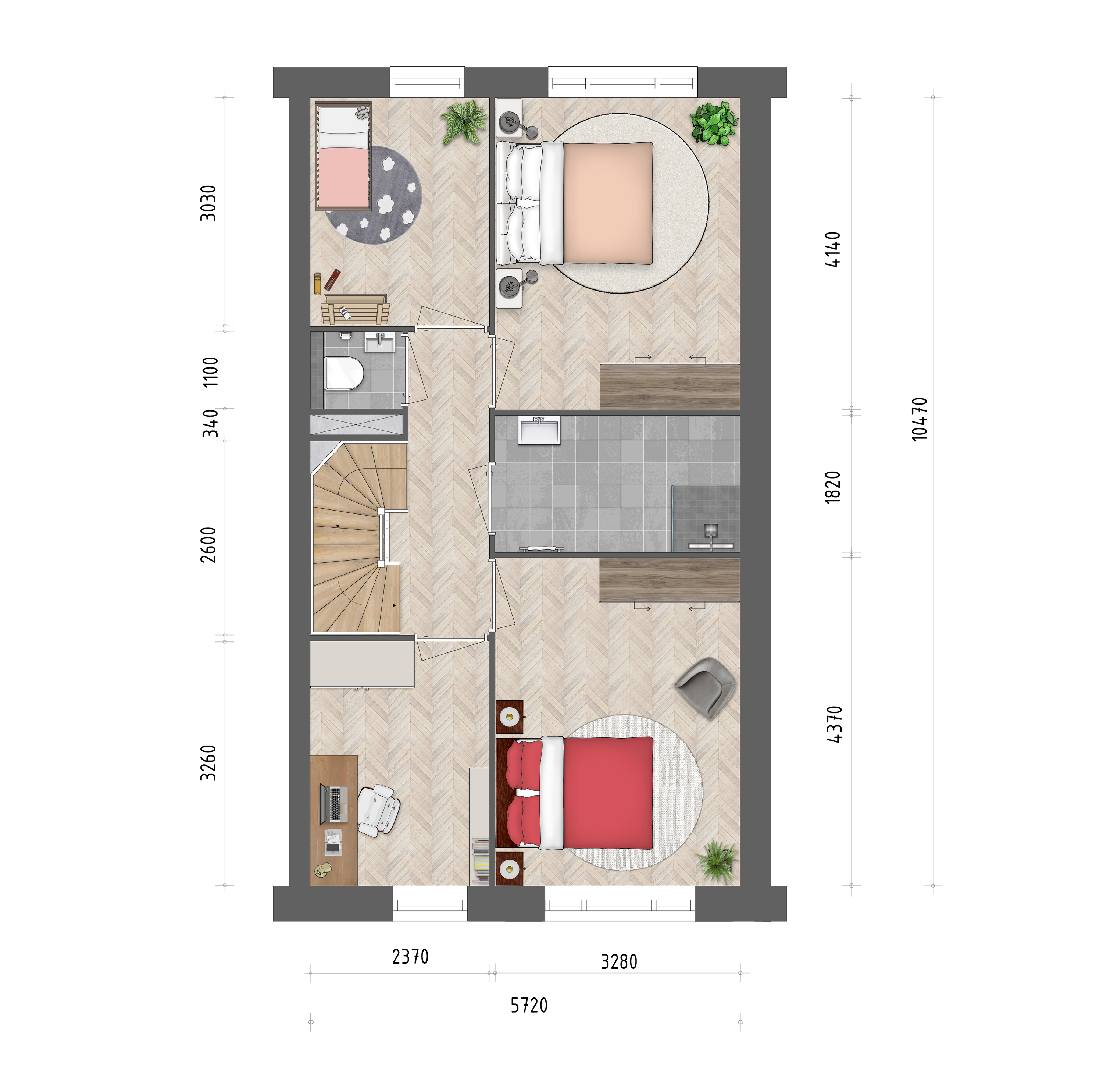 Met maar liefst vier volwaardige woonlagen is de Parkwoning XL een echte alleskunner. Deze woning biedt volop ruimte voor grote gezinnen, thuiswerkers of wie gewoon wat extra wooncomfort zoekt. Dankzij de slimme indeling en riante leefruimtes kun je alle kanten op: van hobbykamer tot thuiskantoor, van tienerverdieping tot luxe logeeretage.