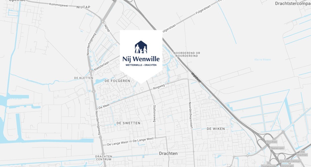 Daarmee geniet je in Nij Wenwille van het beste van twee werelden: de rust van wonen in het groen én alle gemakken van de stad binnen handbereik. Het hart van de wijk wordt gevormd door een prachtig tuinlandschap. Of je nu starter bent, een gezin hebt of op zoek bent naar een levensloopgeschikte woning - in Nij Wenwille vind je een thuis dat bij je past.