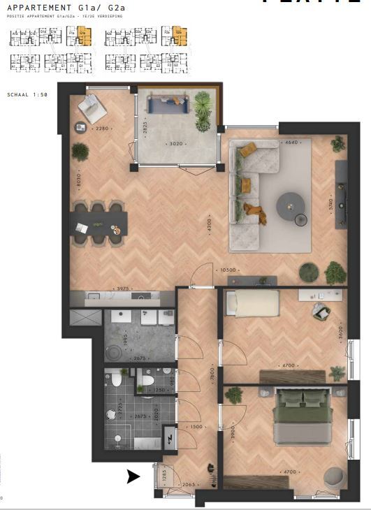 Deze online presentatie en eventuele bijlagen zijn samengesteld aan de hand van de ons bekende gegevens en afbeeldingen. Samen met de artist impressions geven zij een indruk van de toekomstige situatie. Zij pretenderen niet een exacte weergave te zijn van het uiteindelijke product. Rechten kunnen dan ook niet aan deze presentatie of bijlagen ontleend worden. Eventueel genoemde of getoonde afmetingen zijn indicatief.