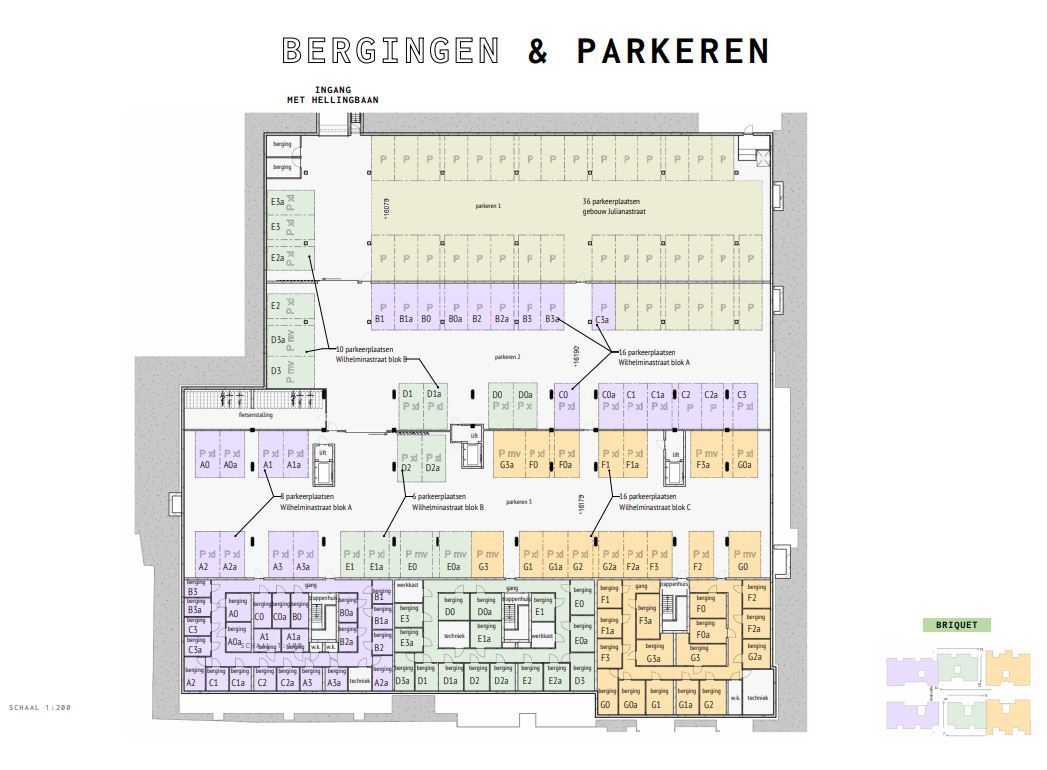 De appartementen op de begane grond krijgen een terras met een entree op de Wilhelminastraat. Ontsluiting van de bovenwoningen gaat middels een centraal geplaatste portiek met lift in een semi publieke binnenstraat. Deze binnenstraat ontsluit een bouwdeel gelegen aan de Wilhelminastraat en een bouwdeel dat zich oriënteert op de binnentuin. Onderling zijn deze bouwdelen verbonden middels luchtbruggen. Vanaf de levendige Wilhelminastraat loop je via steegjes de weldadige rust van de openbaar toegankelijke stadstuin in, dat feitelijk een daktuin boven de parkeerkelder wordt. De tuingevels openen zich maximaal aan de binnentuin, met meer glas en royale buitenruimtes.