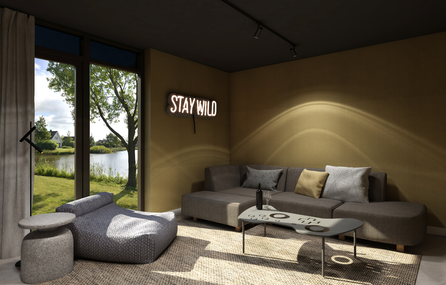 In de hal van de game villa bevindt zich de garderobe en een separaat toilet. Bij binnenkomst in de woonkamer komt u in de riante keuken met kookeiland. Deze is voorzien van luxe keukenapparatuur waaronder een kookplaat met geïntegreerde afzuigkap en Quooker-kraan. Openslaande deuren bieden toegang naar het royale terras met pergola. De grote verassing van deze woning vindt u achter de schuifdeuren die aan de keuken grenzen. Deze kamer ensuite biedt ruimte aan een stoere game room die is voorzien van thuisbioscoop met soundbar en diverse spelcomputers. Succes gegarandeerd voor de perfecte movie of game night. Terrassen van de game woning zijn uitgerust met een gezellige buitenhaard en luxe lounge set.