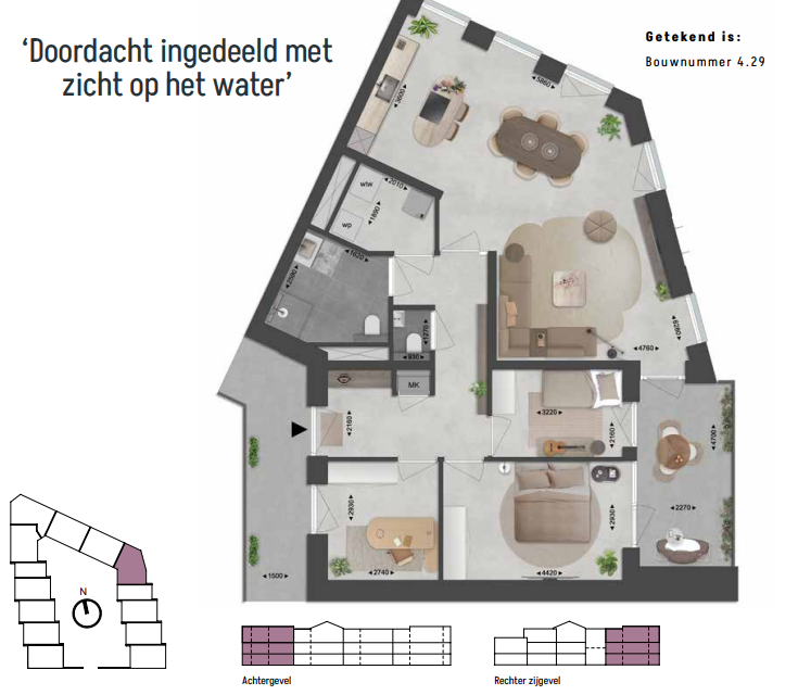 Deze online presentatie en eventuele bijlagen zijn samengesteld op basis van de ons bekende gegevens en afbeeldingen. Samen met de artist impressies geven ze een indruk van de toekomstige situatie. Ze pretenderen geen exacte weergave te zijn van het uiteindelijke product. Rechten kunnen dan ook niet aan deze presentatie of bijlagen worden ontleend. Eventueel genoemde of getoonde afmetingen zijn indicatief.