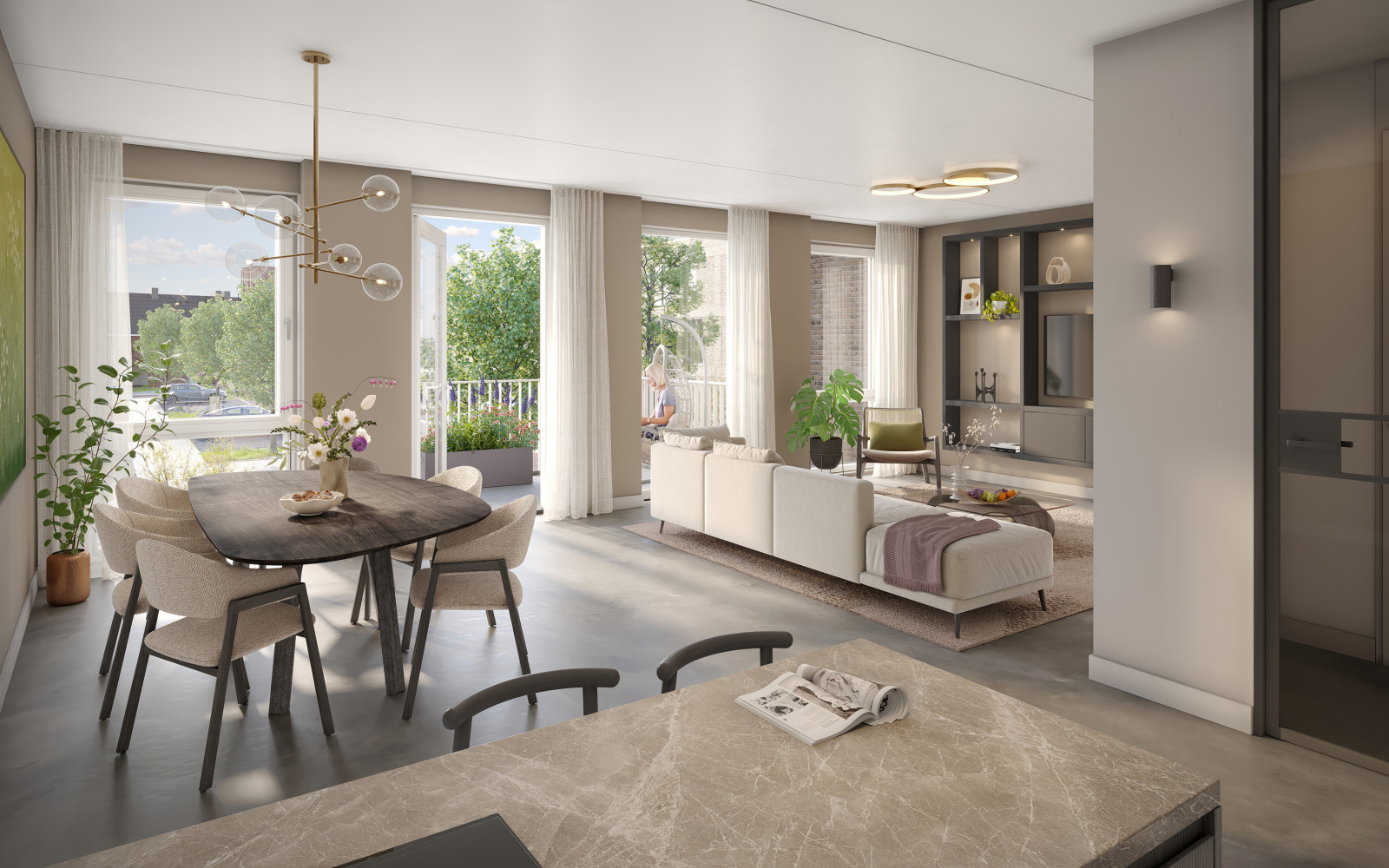 Licht en comfortabel De lichte tussen- en hoekappartementen van deze types liggen verspreid over alle verdiepingen en bieden zicht op het westen, oosten of zuiden, vaak schuin op de Vecht. Dankzij de doordachte indeling, royale ramen en ruime woonkamer met open keuken voelt het appartement groter dan de 84 of 85 vierkante meter doen vermoeden. Je hebt twee volwaardige slaapkamers, een comfortabele badkamer en een terras of balkon waar je kunt genieten van ochtend- of avondzon.
