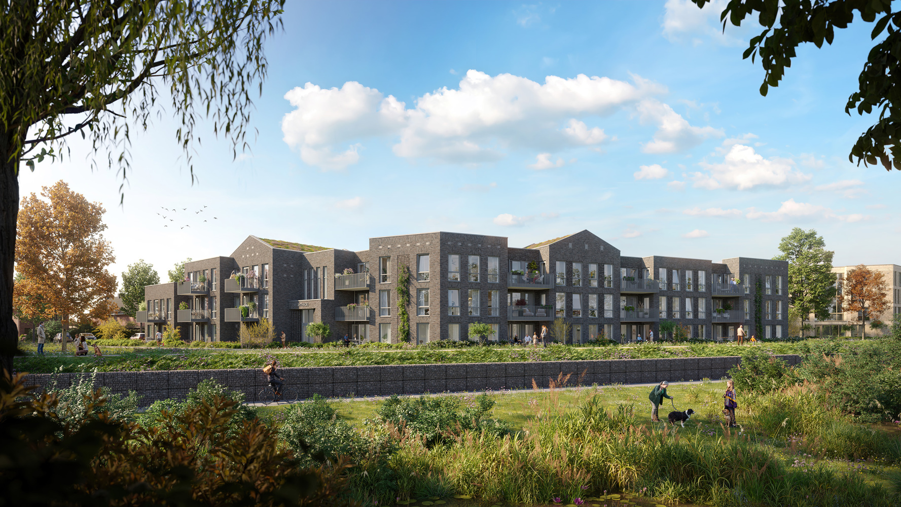 De woningen in De Vechte zijn ontworpen om jarenlang mee te gaan. Er is gekozen voor een solide constructie en duurzame materialen. Baksteen bijvoorbeeld: onderhoudsarm, tijdloos en mooi van kleur naarmate de jaren verstrijken. De gebouwen voldoen aan de nieuwste energiezuinige normen en zijn voorzien van energie-efficiënte installaties, zoals warmtepompen, vloerverwarming en vloerkoeling.Tussen de woongebouwen zorgen groene zones voor rust en ruimte. Je hoort er het gezang van vogels en het ruisen van bladeren, een stukje natuur midden in Hardenberg. Huismussen, zwaluwen en scholeksters vinden hier hun plek net zo goed als de bewoners. Laaggelegen delen van het terrein worden benut als wadi’s die regenwater opvangen en geleidelijk afvoeren. Zo blijft het groen gezond en blijft de buurt ook bij zware regenval prettig bewoonbaar. Auto’s en ander verkeer blijven intussen op de Kruserbrink, zodat de groene zones rustig en groen blijven. Met al deze keuzes groeit De Vechte uit tot een toekomstbestendige woonbuurt: duurzaam, natuurrijk en vriendelijk voor mens én milieu