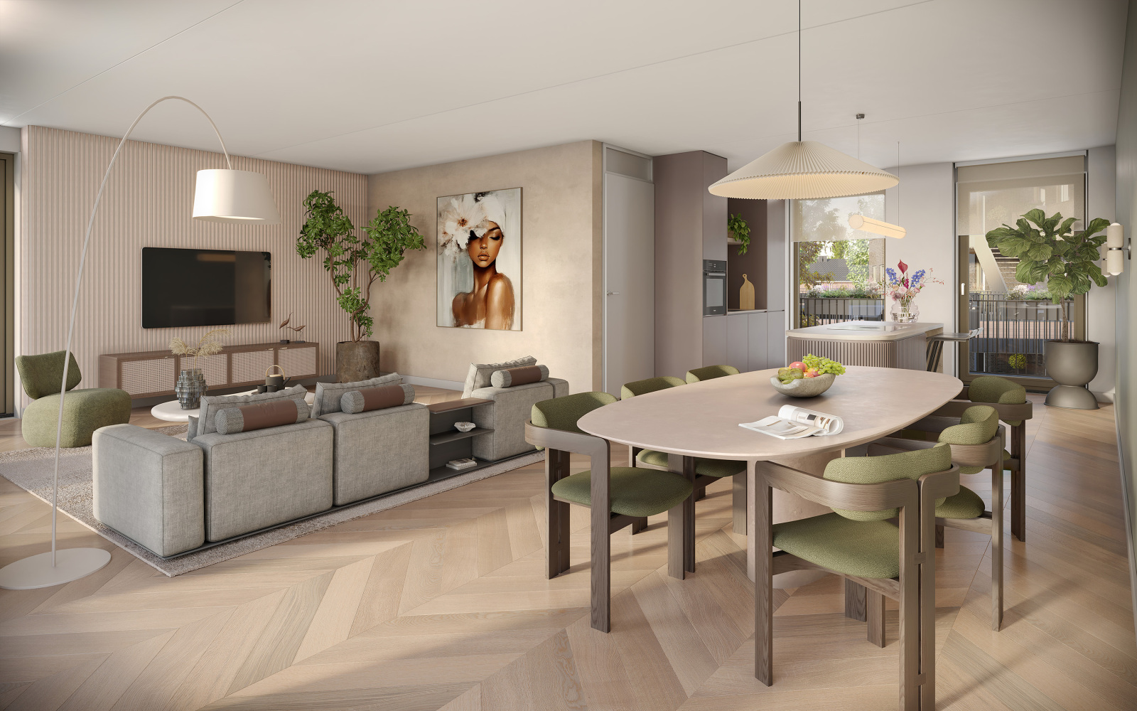 Deze online presentatie en eventuele bijlagen zijn samengesteld op basis van de ons bekende gegevens en afbeeldingen. Samen met de artist impressies geven ze een indruk van de toekomstige situatie. Ze pretenderen geen exacte weergave te zijn van het uiteindelijke product. Rechten kunnen dan ook niet aan deze presentatie of bijlagen worden ontleend. Eventueel genoemde of getoonde afmetingen zijn indicatief.