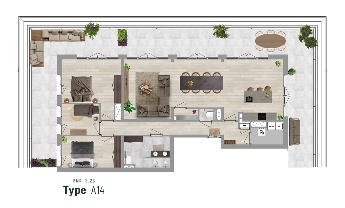PenthouseAppartement type A14-penthouse (verdieping 5) Bouwnummer 2.23