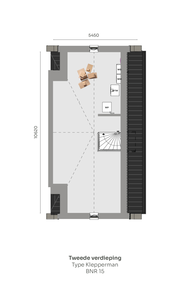 Tweede verdieping: Royale open zolderverdieping met volop mogelijkheden, zoals het creëren van een extra slaapkamer of een hobbyruimte. Tevens bevindt zich hier de technische ruimte.