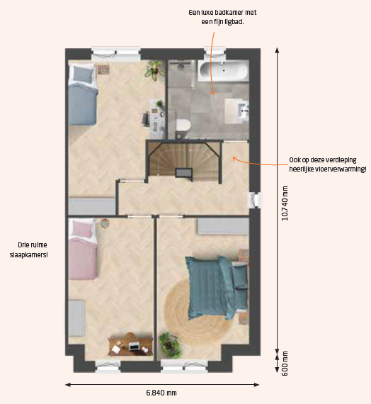 Het woningmodel Jasmijn biedt talloze mogelijkheden. Met een breedte van 6,24 of 6,84 meter en een diepte van 10,74 meter, is deze woning verrassend ruim. De accentwoning van woningmodel Jasmijn is 6,84 meter breed en 10.74 meter diep. Het accent in de voorgevel geeft extra leefruimte. De woonkamer aan de voorzijde biedt volop ruimte voor een comfortabele zithoek, terwijl de achterzijde perfect is voor het realiseren van je ideale keuken. Bovendien is er een aangebouwde stenen berging, erg handig!