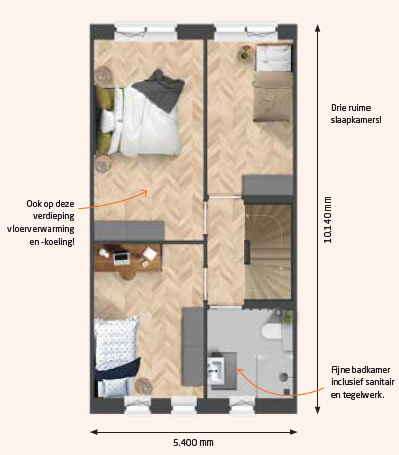 - vloerverwarming en -koeling op de begane grond en de eerste verdieping