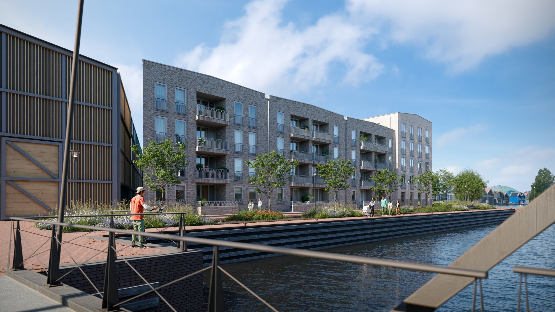 Als een baken markeert het prachtige hoekgebouw Noorderwerf deze plek. De dakvorm is geïnspireerd op het industriële verleden, de ramen zijn groot en de balkons riant. Wat een rijkdom om hier te wonen. Je kijkt uit over het mooie park én je mist niets van de levendigheid op het water. Laat jij je verleiden?
