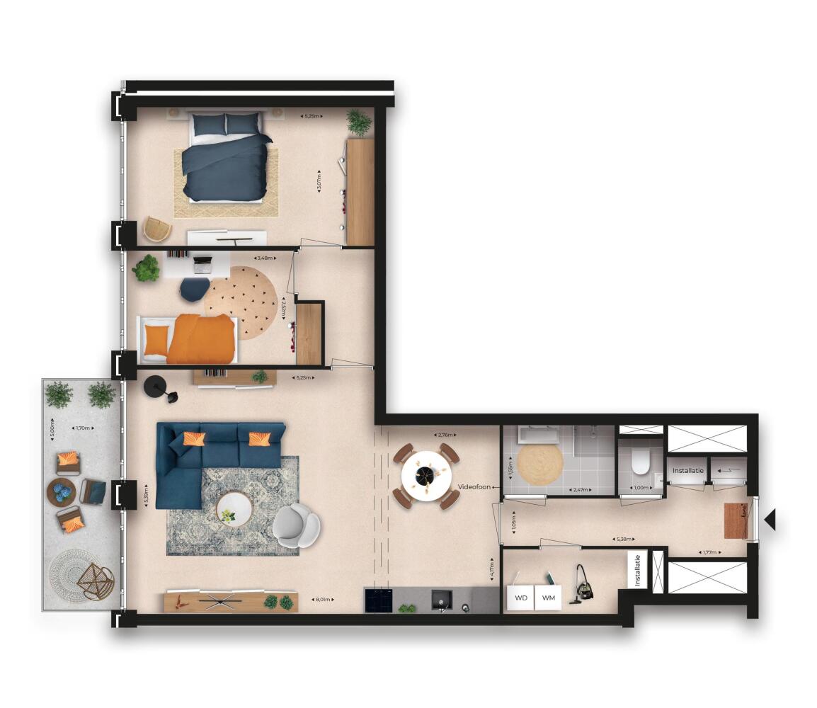 - Twee goed bemeten slaapkamers