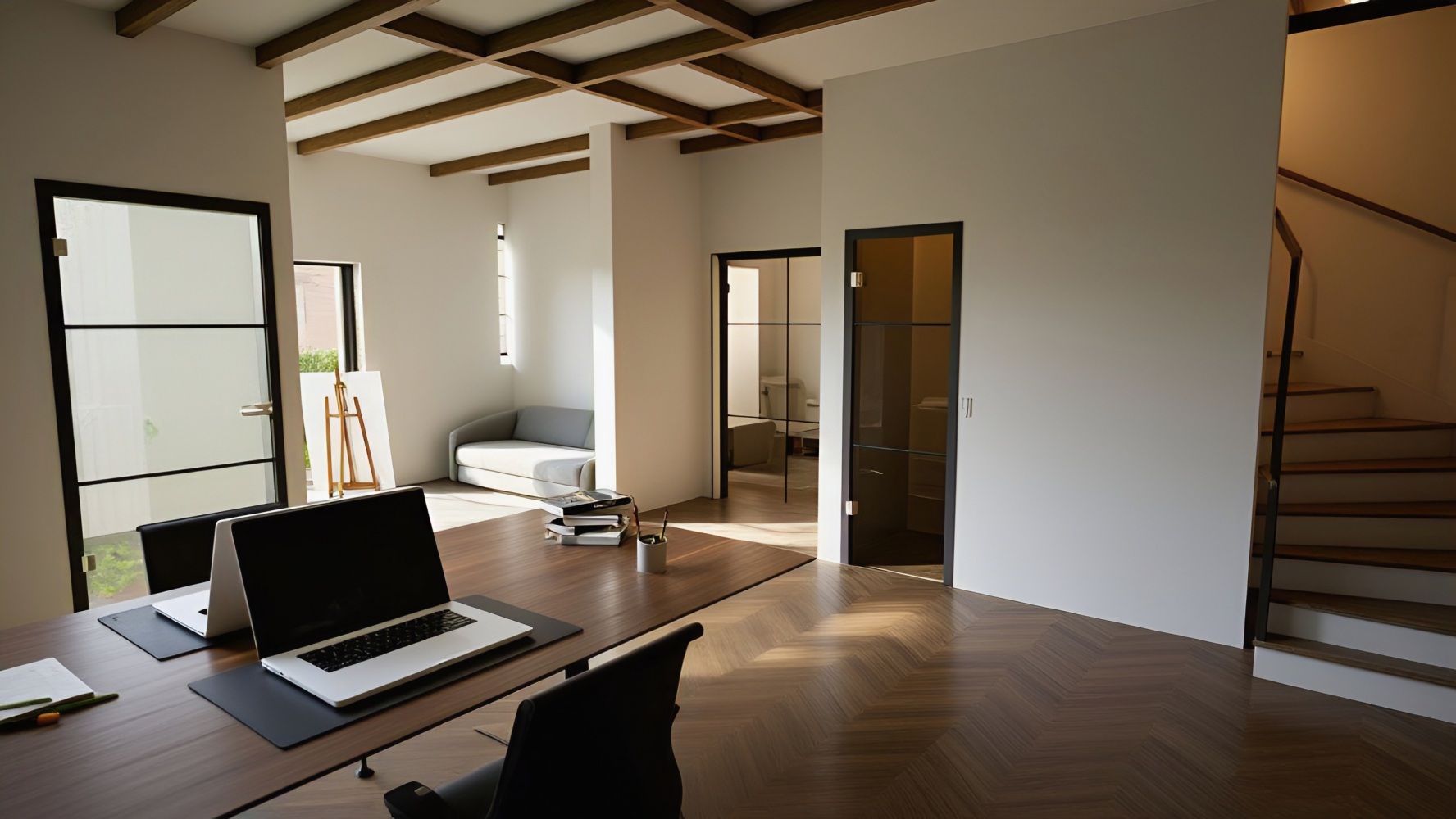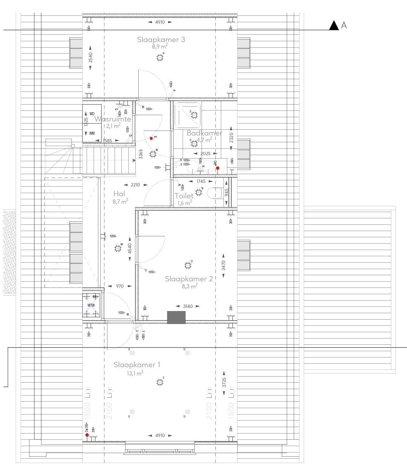 - Drie slaapkamers en een badkamer op de 1e verdieping