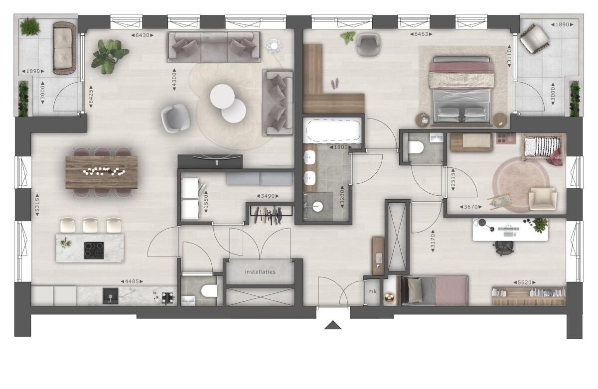 De indeling van dit appartement is gewijzigd! Hierdoor zijn de slaapkamers nu op het oosten gelegen en de woonkamer en keuken aan de westzijde van het appartement.