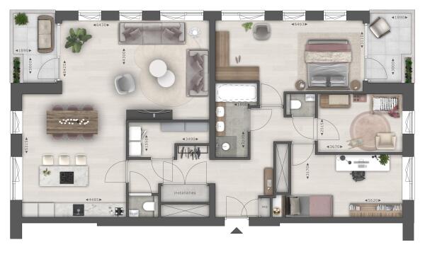 Dit bouwnummer is gelegen op de 4e verdieping van het complex Lourens. Het beslaat de gehele breedte van het gebouw en heeft daardoor niet alleen 180 graden vrij uitzicht, maar ook twee balkons! Eén pal oost en één pal west gelegen.