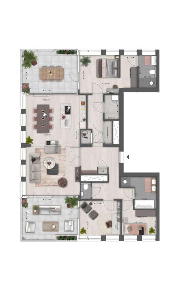Dit betreffen zeer riante appartementen met een ruimte woonkamer met open keuken, met drie slaapkamers, twee badkamers, een separaat toilet en twee dakterrassen. De penthouses beschikken over een woonoppervlakte van 128 m².